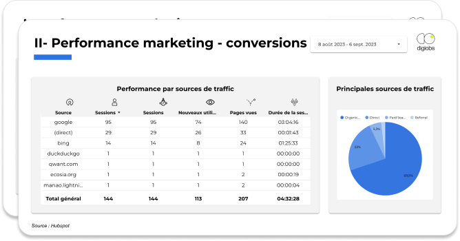 Car sans donnée, point de stratégie, nous mettons en place un tableau de bord dans lequel nous choisissons avec vous les données essentielles à la réussite de votre projet. En fonction des résultats, nous vous aidons à diriger vos actions afin d’atteindre vos objectifs